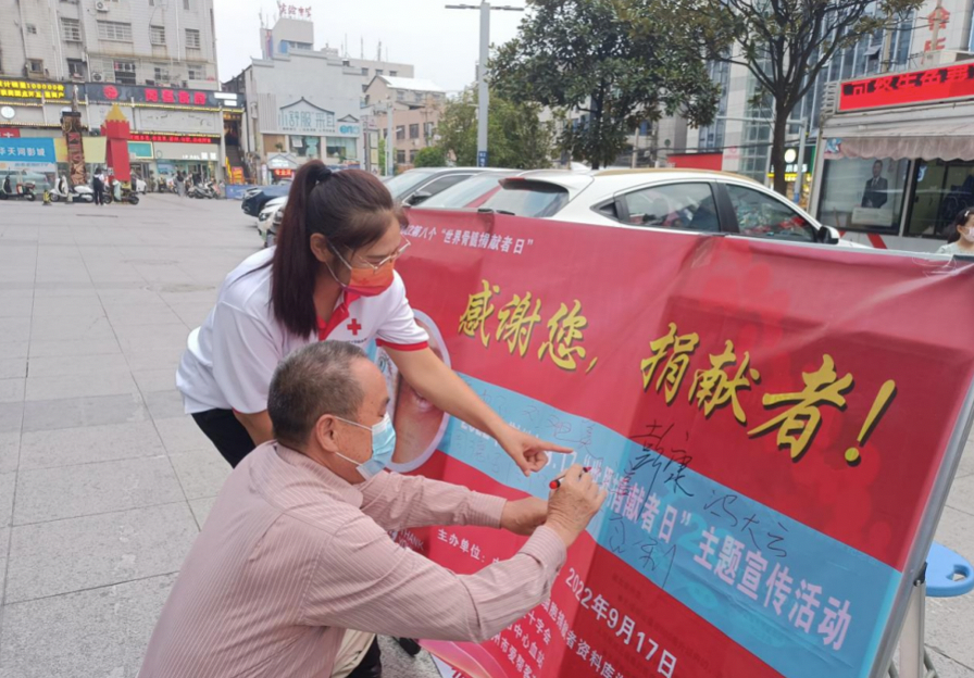 9月17日是第八个“世界骨髓捐献者日”,为了弘扬“人道、博爱、奉献”的红十字精神,呼吁大家尊重生命、珍惜生命、保护生命,鼓励更多的适龄健康公民参与挽救血液病患者的公益行动,湖北各地红十字会开展了丰富多彩的主题志愿者活动,让我们一起来回顾。 武汉 活动期间,武汉市红十字“三献”志愿服务队开展了为期两天的爱心献血活动。活动现场,17名志愿者在光谷步行街向广大群众宣传无偿捐献造血干细胞知识,共发放宣传资料100余份,累计献血量7000余毫升,登记造血干细胞捐献志愿者41人。 黄冈 黄冈市红十字会走进当地青砖湖社区新时代文明实践站,开展了“有爱相‘髓’ 善行黄冈”无偿献血暨造血干细胞捐献主题宣讲活动。活动现场,黄冈市红十字会、市中心血站工作人员向现场居民群众发放宣传手册,并结合自身专业与实际经历对无偿献血和造血干细胞捐献相关知识的宣传讲解。相关志愿者通过快板表演、非洲鼓等文艺方式进行主题宣传。 黄石 黄石市和平街社区红十字会的志愿者们走上街头、超市、商铺,向过往群众发放宣传材料,讲解造血干细胞捐献知识,并为群众现场解答相关问题。 荆门 在荆门,红十字志愿者们挽起袖管,走上献血车,用实际行动纪念第八个“世界骨髓捐献者日”。 荆州 荆州市开展了以无偿献血宣传资料和造血干细胞捐献知识为主的有奖问答、文艺表演、随机采访、互动游戏猜猜猜,宣传招募市民参与无偿献血和造干采样,组织市民在签名旗上留下祝福语。 襄阳 活动现场,襄阳市红十字会“三献”宣传志愿服务队的志愿者们向现场的群众发放捐献造血干细胞指南并对捐献造血干细胞的过程以及认知误区进行了讲解。 宜昌 宜昌地区分别在宜都市、枝江市、当阳市、兴山县、秭归县、长阳土家族自治县、五峰土家族自治县以及宜昌市夷陵区、猇亭区红十字会开展了“感谢你,捐献者”主题宣传活动。 截至2022年8月31日,中华骨髓库入库志愿者数据已超过311万4120人份,湖北在库人数突破12万人份,支撑起了无数患者生的希望。据了解,目前仍有相当数量的血液病患者无法获得帮助,对入库志愿者数量的需求仍然巨大,本次全省各地开展系列主题志愿者活动旨在号召全社会更多关注、支持造血干细胞捐献,带动更多的志愿者加入中华骨髓库。